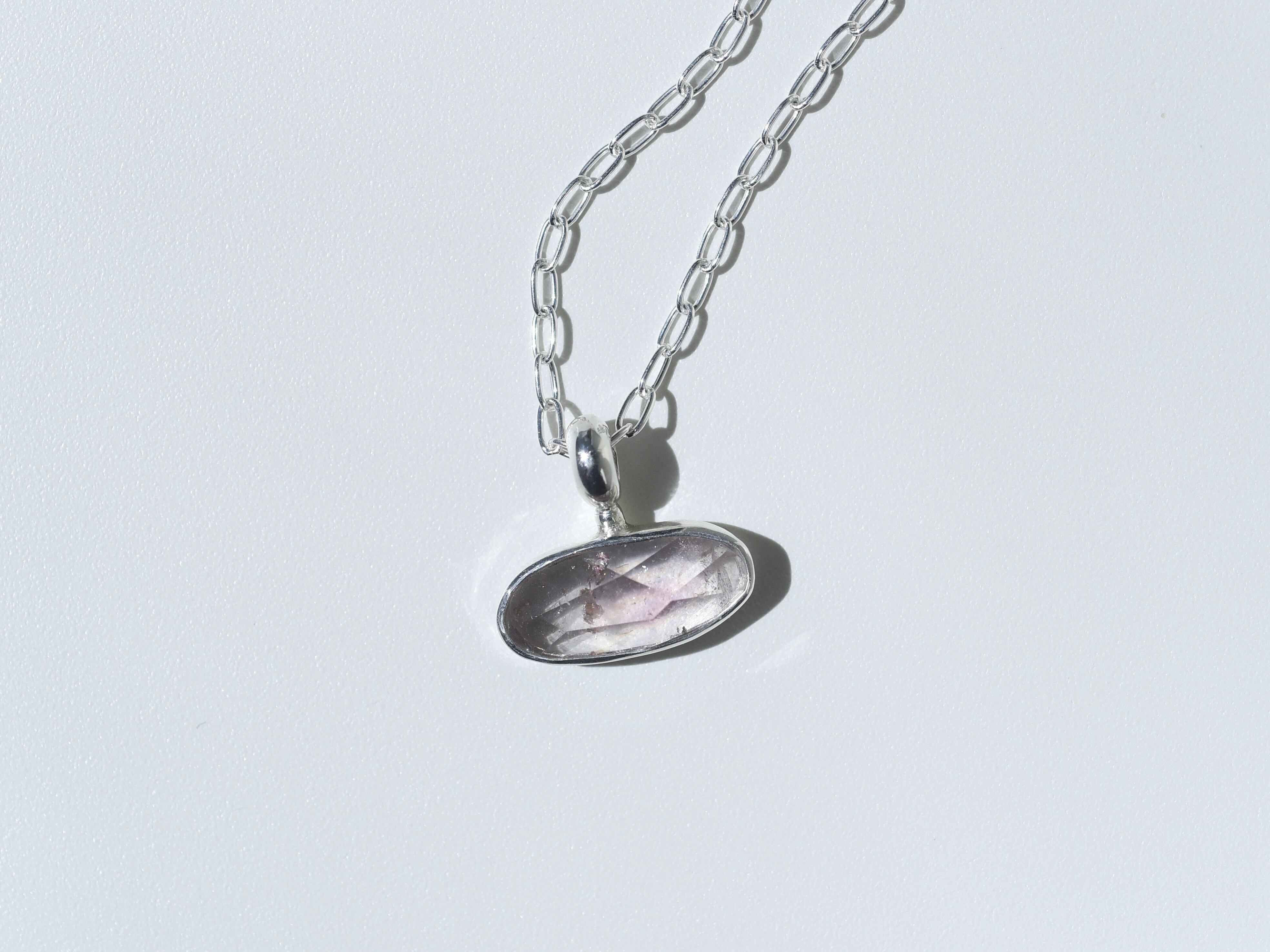 服の上に乗せて楽しめる、少し長めの45cmチェーンを使用しています